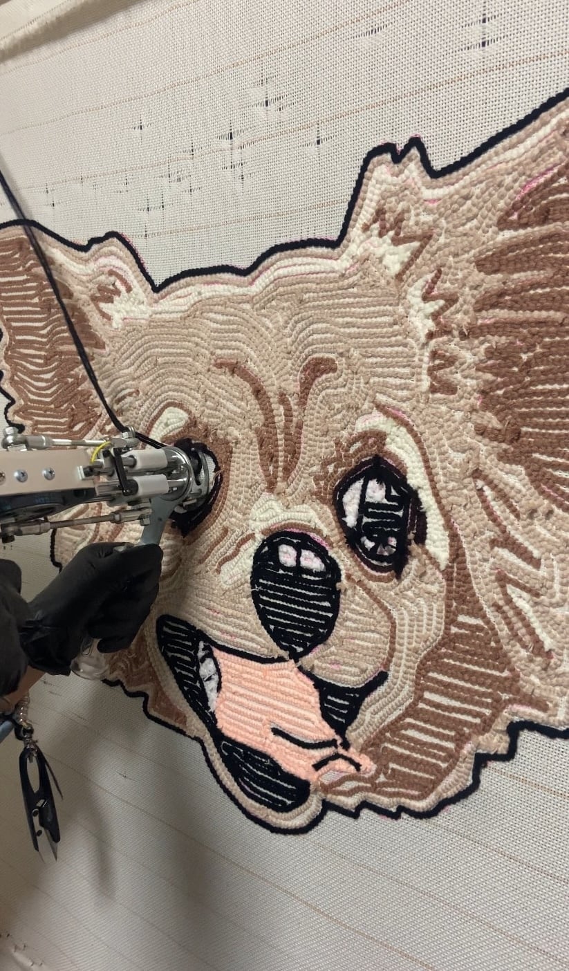 写真だけでは伝わり切らない「温かみ」を形にするため、タフティング技法を用い、熟練の職人が一点一点手作業で製作しております。